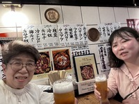 お休みの日下北沢の帰りにお好み焼きを一緒に。乾杯